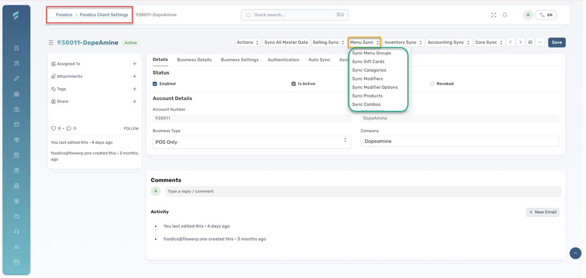 مزامنة الطلبات والمبيعات من Foodics إلى FlowERP بشكل آني